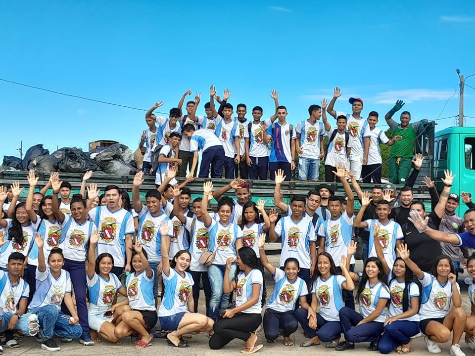 Alunos da Escola SORAYA ESTADUAL realizam coleta de lixo nas ruas de Curuá.