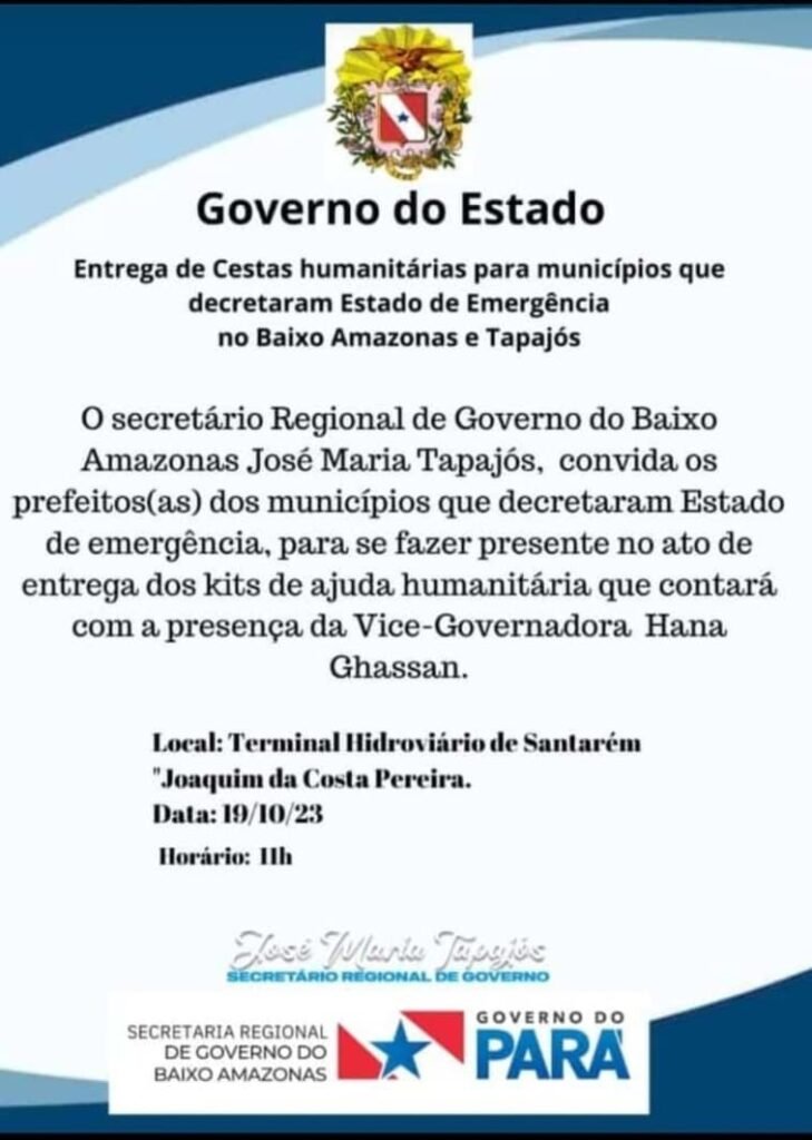 / / / Prefeito está em Santarém, recebendo as cestas básicas que será entregue as famílias afetas pela seca.