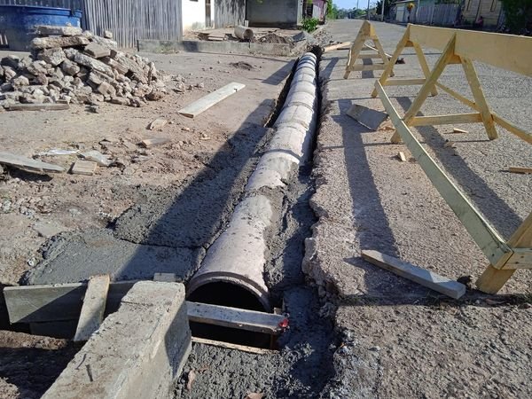 Trabalhos de instalação de bueiros e abertura de canaletas para que a água da chuva possa passar sem danificar as ruas .